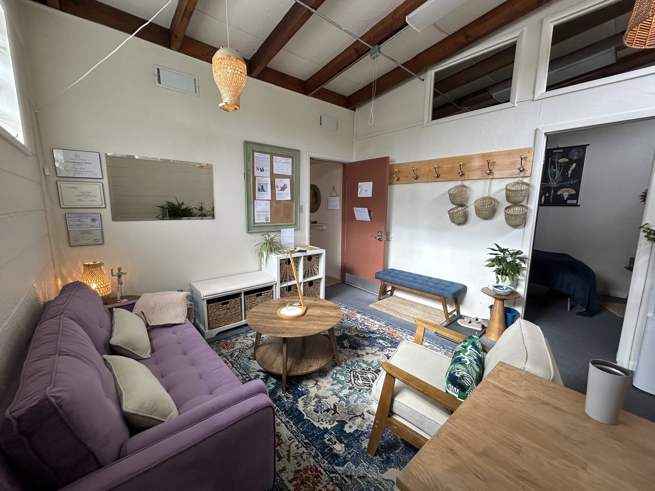 A sweet space right off the waiting area when you walk into the the Healing Arts Center. Here is where you will check-in for your class or appointment, hang up or put down any of your belongings (or expired belief systems) that you won’t need while you’re here. Kick-off your shoes, have a little water or tea, and enjoy a sense of nourishment with all your senses. Our office locks while classes or appointments are happening so your items are always secured at all times.